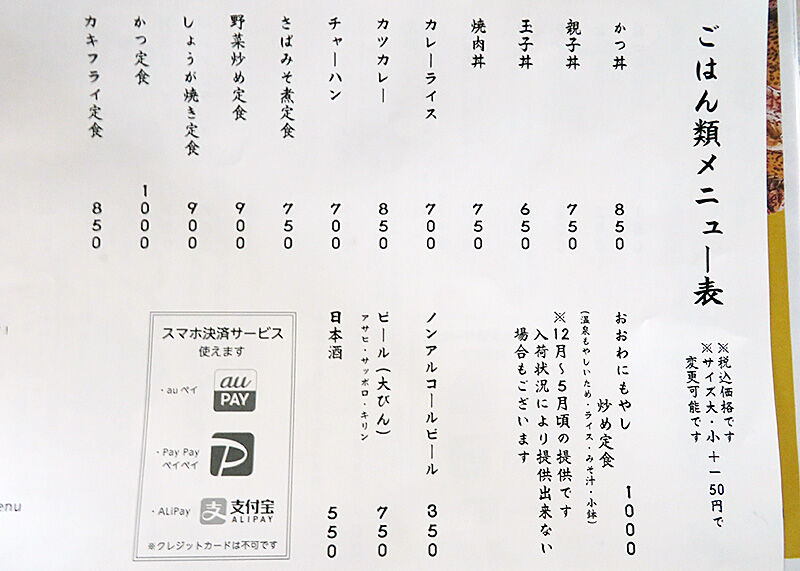 チャーハン大盛と可能ならカキフライ単品で