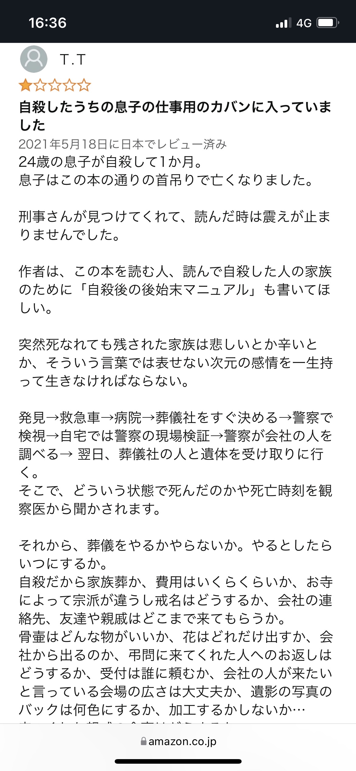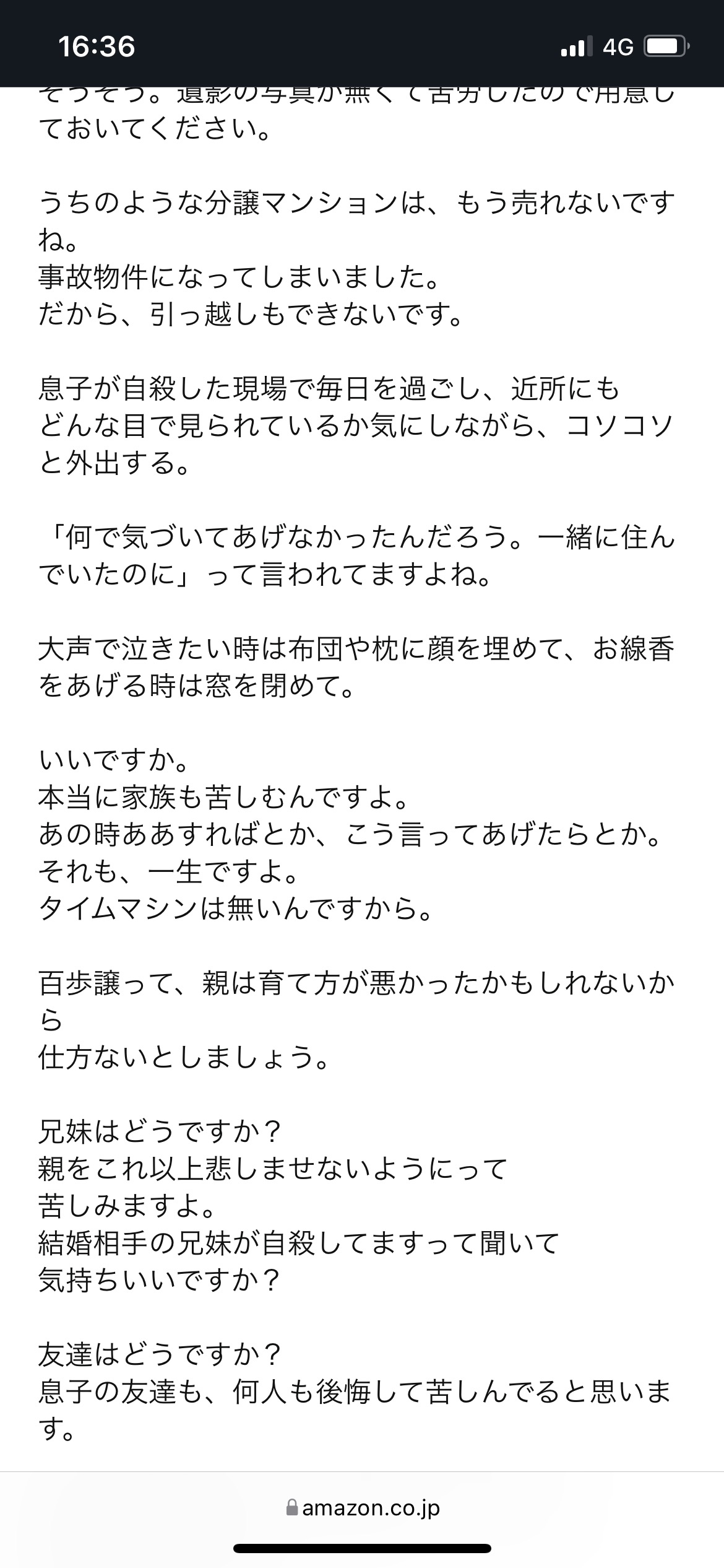 息子が勝手に死んだせいで迷惑被ったしか書いてない