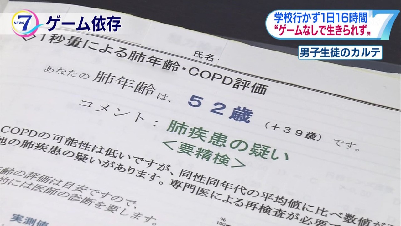 スマホ見すぎで肺年齢50歳の若者